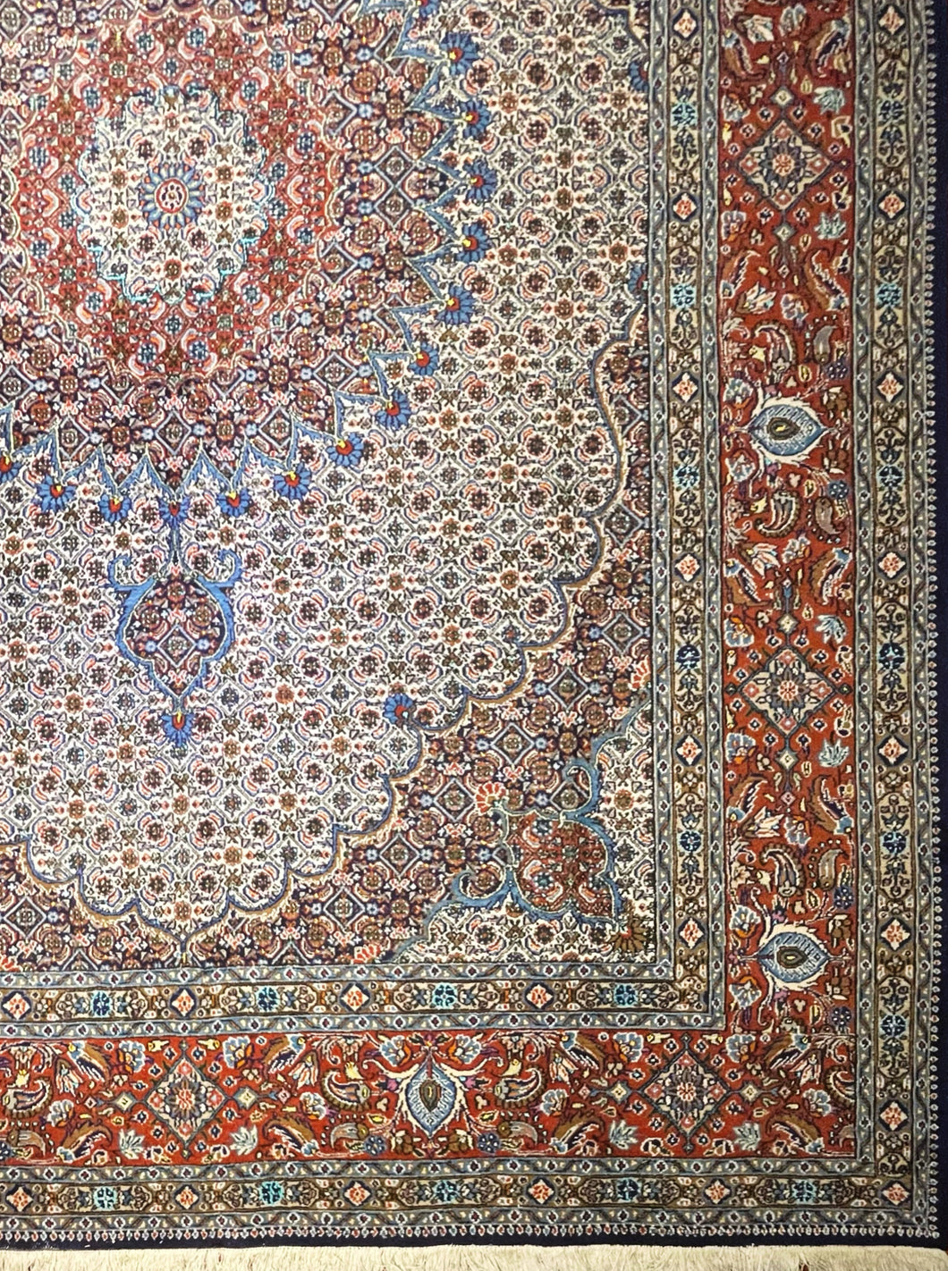 Vespucci Rugs proudly refrains from any dealings in carpets with devaluing structural damage such as bleaching or tea washing, over-dyeing, painting, reduced and missing borders, intentional fading, color-bled Carpets, water damaged and dry-rotted Carpets, Machine Sewn fringes and Selvages, or Patch Repairs.